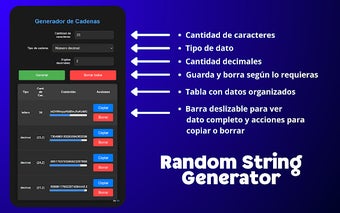Los requisitos del sistema operativo del Generador de Cadenas Aleatorias no están disponibles en este momento. La versión actual de la aplicación es 1.2.